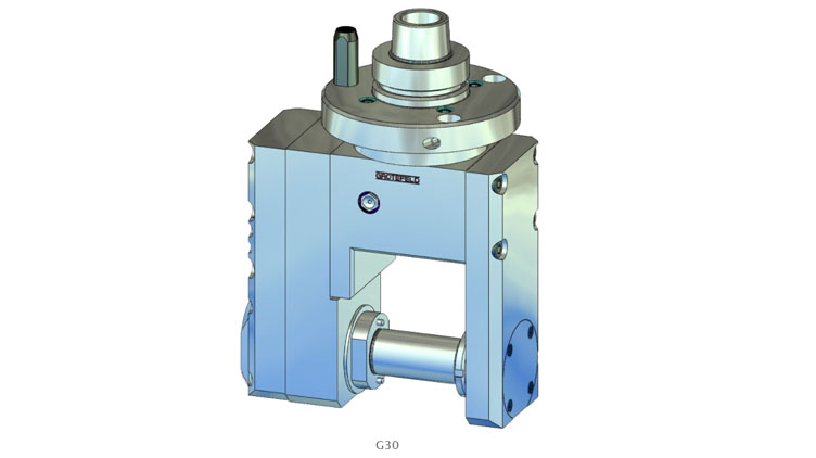 G30 系列的角頭專為銑削水平面而設計。外殼有一個加工主軸,用于夾持帶有鋁制基體的刀具。刀架的主軸旋轉方向與驅動器的旋轉方向相反。