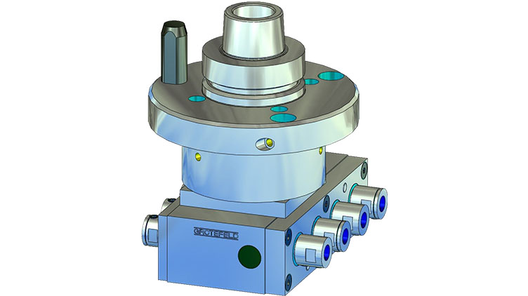 角頭 W04 可安裝在兩個相對的側面,每個側面最多可配備五個鉆孔主軸。中心鉆主軸的旋轉方向與驅動器的旋轉方向相同,副主軸的旋轉方向與驅動器的旋轉方向相反。另一側的可選鉆架具有相反的旋轉方向。