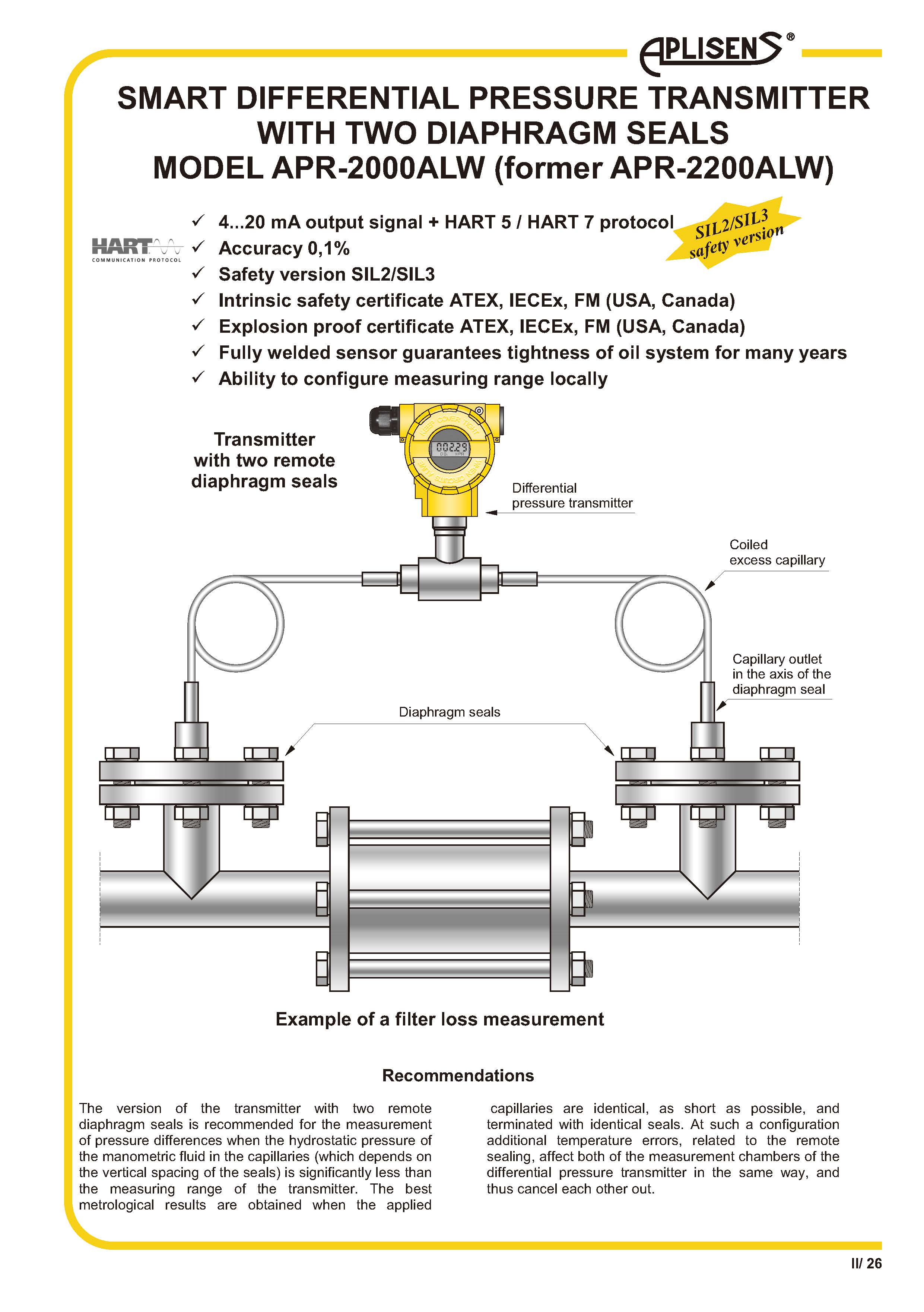 帶兩個隔膜密封的智能差壓變送器